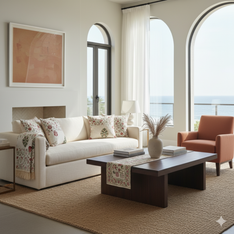 Transform your home into a curated luxury abode with our exquisitely handcrafted block-printed creations. Each piece merges heritage artistry with refined minimal elegance, infusing your space with sophisticated charm, rich texture, and a serene sense of elevated, timeless living.